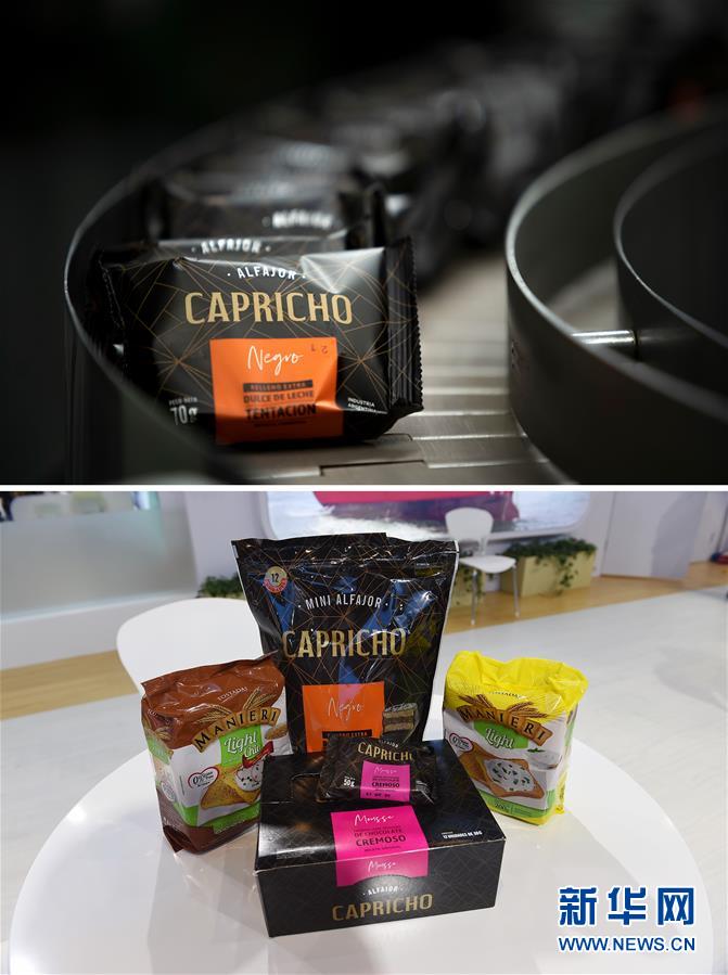 这是一张拼版照片,上图为10月28日在阿根廷马科斯巴基市拍摄的当地企业生产的阿根廷特色甜品(新华社发 马丁·萨巴拉摄);下图为11月8日在第三届进博会阿根廷城市马科斯巴基市展位拍摄的特色甜品(新华社记者 赵丁喆 摄)。马科斯巴基市成为首个亮相进博会的阿根廷城市,火腿、烤吐司、甜点等阿根廷传统美食是其参展的主打产品。 新华社发