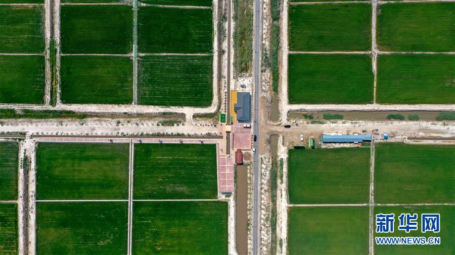 这是吉林白城大安市佰澳格林农场新增的水稻田(7月23日摄,无人机照片)。新华社记者 张楠 摄