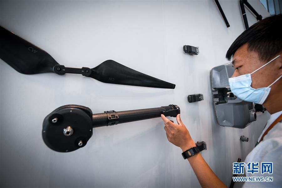 11月9日,参会者在发布会后了解大疆农业植保无人机T30的零部件。 当日,大疆农业在深圳发布T30、T10两款新品植保无人机。据介绍,T30最大载重30千克,每小时作业效率可达240亩次,并增加变形翼设计,提升果树飞防效果。T10植保无人机针对小地块使用,机身轻便,单人即可操作。 新华社记者 毛思倩 摄
