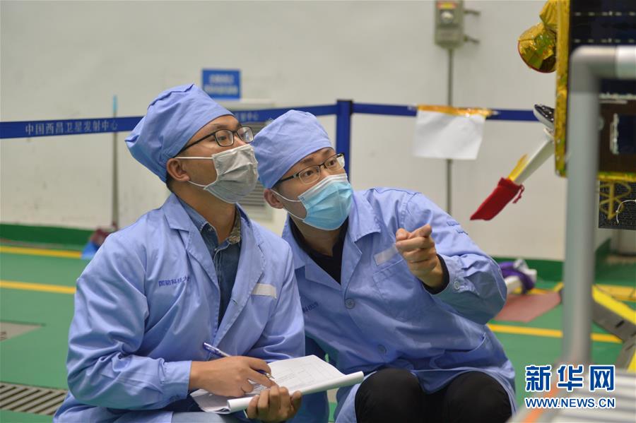 国防科技大学空天科学学院微纳卫星工程中心快响团队科研人员在做数据核对(5月21日摄)。新华社发(卢屹屹 摄)