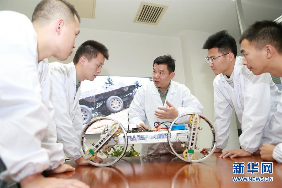 国防科技大学智能科学学院无人作战系统科技创新团队科研人员在实验室探讨设计方案(10月19日摄)。新华社发(何书远 摄)