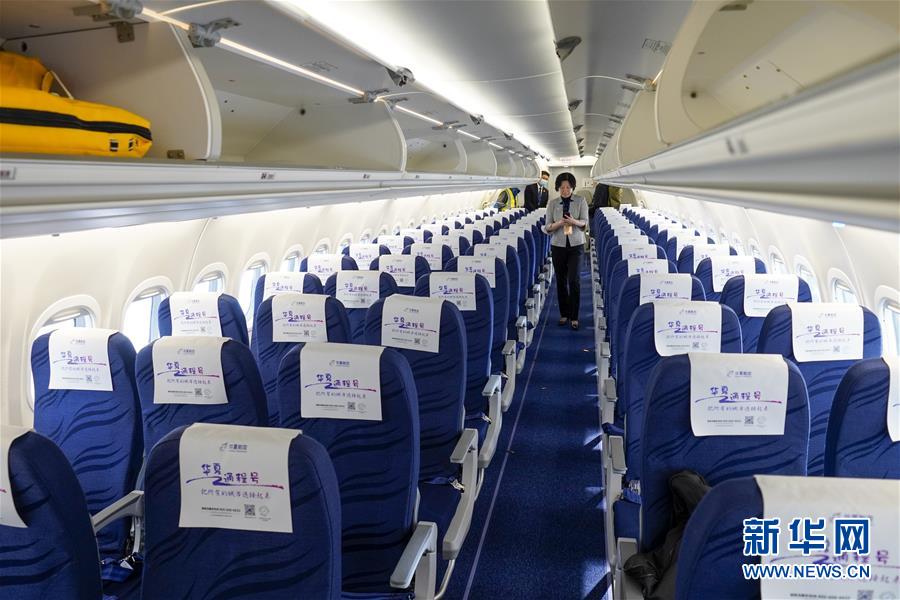 11月10日,中国商飞向华夏航空交付的第一架ARJ21飞机的客舱内,参加交接仪式的嘉宾在参观。 11月10日,中国商飞与华夏航空100架国产民机签约庆贺暨第一架ARJ21飞机交接仪式在重庆江北国际机场举行。这是华夏航空与中国商飞签订100架购机合同后,中国商飞交付的第一架民用客机。 新华社记者 刘潺 摄