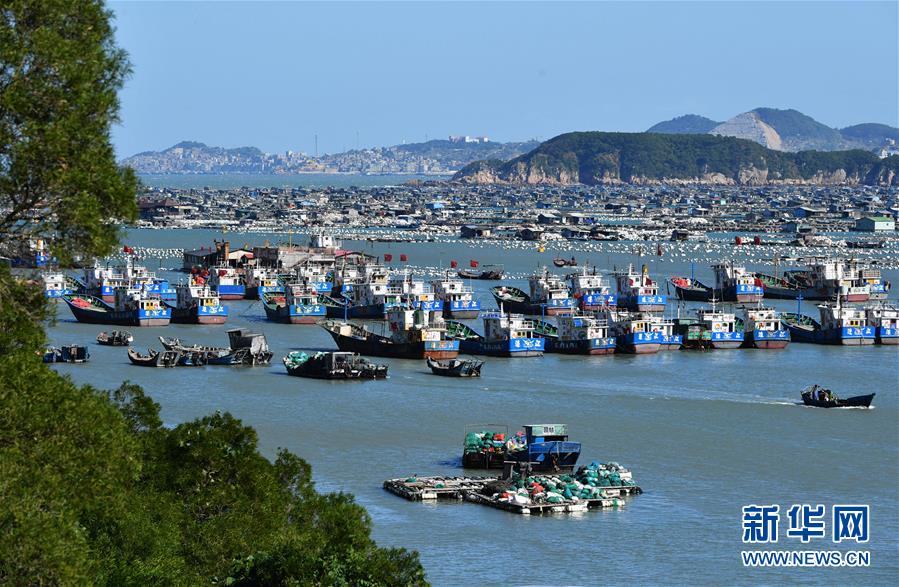 11月10日拍摄的位于连江县安凯乡的码头。 当日,在福建省福州市连江县的“海上牧场”,渔民驾船穿梭在养殖网箱和浮标之间,呈现出一幅海上渔耕的壮美画卷。 新华社记者 魏培全 摄