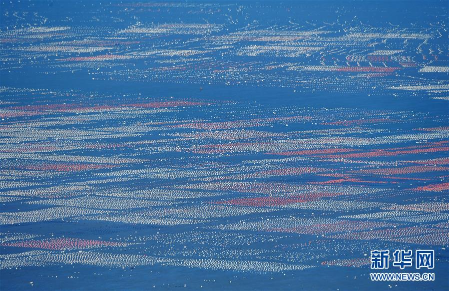 11月10日拍摄的连江县安凯乡的“海上牧场”。 当日,在福建省福州市连江县的“海上牧场”,渔民驾船穿梭在养殖网箱和浮标之间,呈现出一幅海上渔耕的壮美画卷。 新华社记者 魏培全 摄