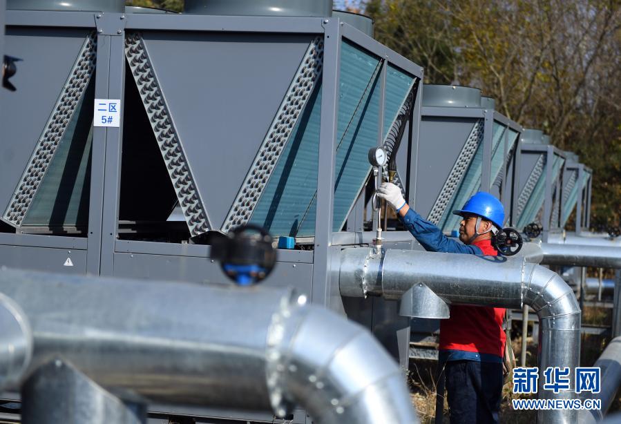 11月12日,国网威海市文登区米山供电所技术人员在金岭山庄清洁能源供暖站检查供电线路。新华社记者 朱峥 摄