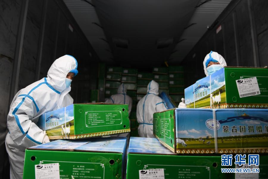 首批已加工蒙古国捐赠羊开始运往湖北