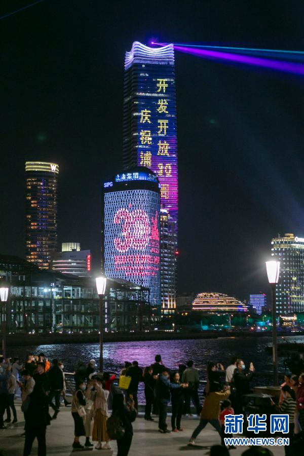 11月12日,游客在观赏浦东陆家嘴灯光秀。新华社记者 王翔 摄