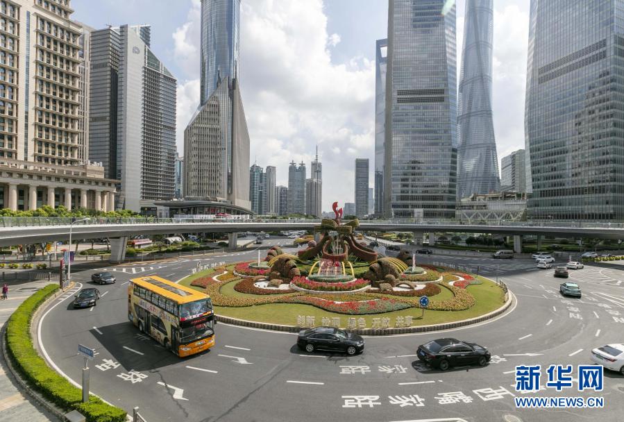 9月30日在浦东陆家嘴拍摄的花卉景观。新华社记者 王翔 摄
