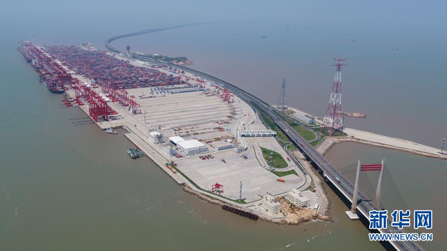 这是8月17日拍摄的上海洋山港集装箱码头(无人机照片)。新华社记者 丁汀 摄