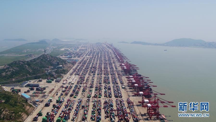 这是8月17日拍摄的上海洋山港集装箱码头(无人机照片)。新华社记者 丁汀 摄