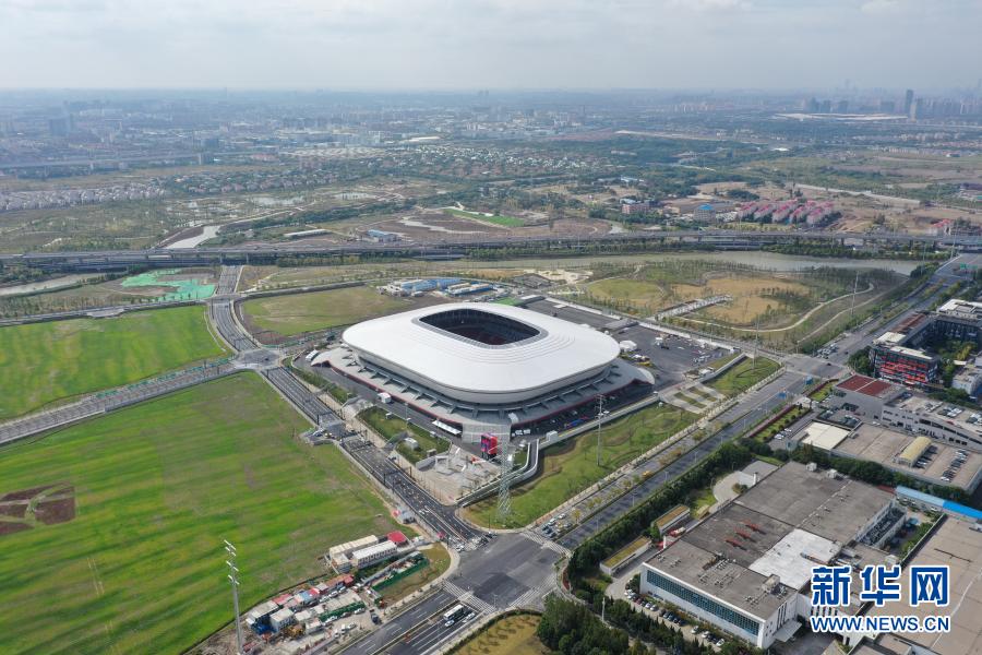 10月26日拍摄的上海浦东足球场(无人机照片)。新华社记者 丁汀 摄