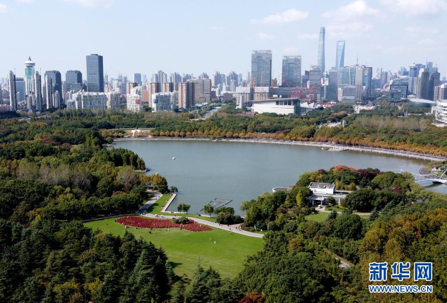 位于上海市浦东新区的世纪公园(10月30日摄,无人机照片)。新华社记者 刘颖 摄