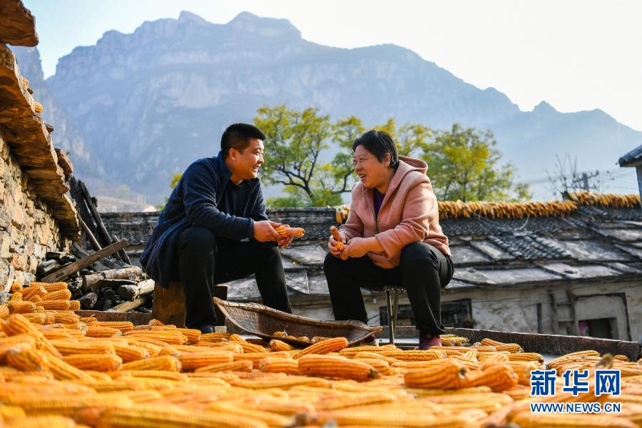 11月11日,山西省平顺县虹霓村第一书记郭原理(左)在走访脱贫户。