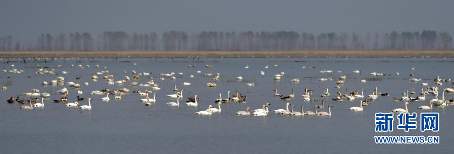 这是在鄱阳湖湿地地区江西省南昌市高新区鲤鱼洲管理处周边水域拍摄的越冬候鸟(11月5日摄)。新华社记者 彭昭之 摄