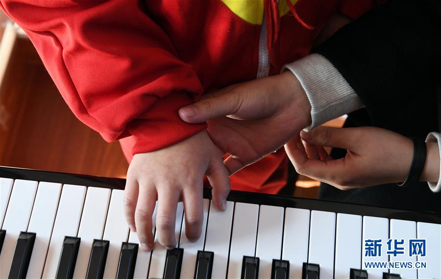 11月13日,在天津市蓟州区尤古庄镇大龙卧中心小学,天津音乐学院声乐系研究生朱哲在教小学生弹琴。 2018年以来,天津音乐学院声乐系对地处偏僻的天津市蓟州区尤古庄镇大龙卧中心小学展开帮扶,捐赠资金帮助该小学建设音乐教室、购置教具,同时每周选派优秀学生和教师到该小学担任音乐老师,为学生开设音乐课,让乡村小学的孩子们感受音乐带来的魅力。 新华社记者 马平 摄