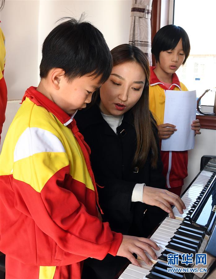 11月13日,在天津市蓟州区尤古庄镇大龙卧中心小学,天津音乐学院声乐系研究生朱哲(中)在教小学生弹琴。 2018年以来,天津音乐学院声乐系对地处偏僻的天津市蓟州区尤古庄镇大龙卧中心小学展开帮扶,捐赠资金帮助该小学建设音乐教室、购置教具,同时每周选派优秀学生和教师到该小学担任音乐老师,为学生开设音乐课,让乡村小学的孩子们感受音乐带来的魅力。 新华社记者 马平 摄