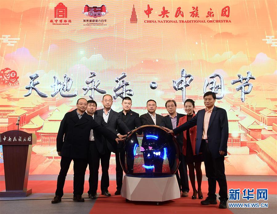 11月13日,在故宫博物院与中央民族乐团的战略合作签约仪式上,现场嘉宾共同启动即将上演的《天地永乐·中国节》主题视听音乐会。 新华社记者 李贺 摄