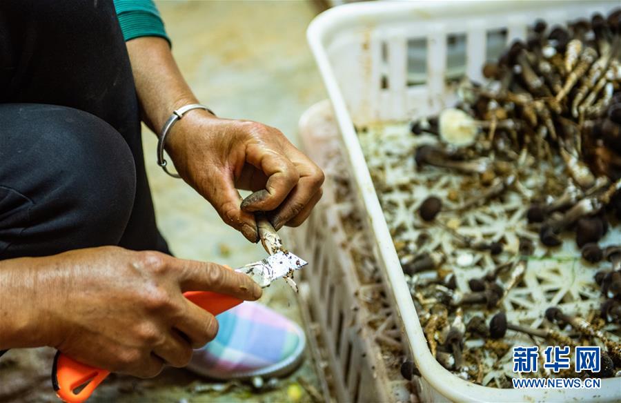 麻怀村村民在给采摘好的黑皮鸡枞菌削根(5月25日摄)。 地处麻山腹地的贵州省罗甸县沫阳镇麻怀村,是一个被群山包围的山地村,也曾是饱受交通不便之苦的极度贫困村。从1999年开始,被称为当代“女愚公”的邓迎香,带领乡亲们经过十余年的艰苦努力,开凿出一条216米长的隧道,将与世阻隔的麻怀村与山外世界连通在一起。如今的麻怀村发展种植养殖、旅游业,产业欣欣向荣。这条连接大山之外的隧道,已成为当地通往幸福的隧道。 新华社记者 陶亮 摄