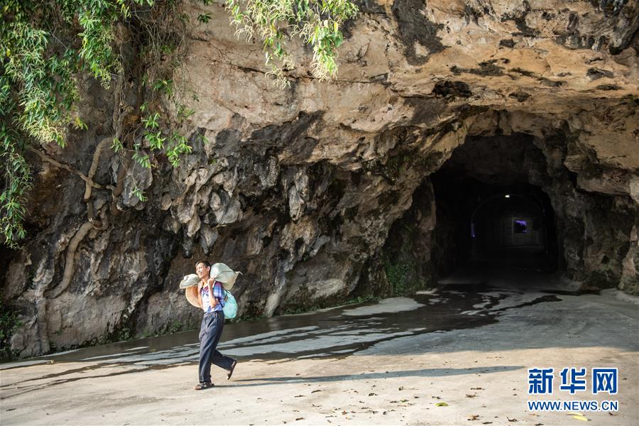 一名村民背着行李走出麻怀隧道(8月31日摄)。 地处麻山腹地的贵州省罗甸县沫阳镇麻怀村,是一个被群山包围的山地村,也曾是饱受交通不便之苦的极度贫困村。从1999年开始,被称为当代“女愚公”的邓迎香,带领乡亲们经过十余年的艰苦努力,开凿出一条216米长的隧道,将与世阻隔的麻怀村与山外世界连通在一起。如今的麻怀村发展种植养殖、旅游业,产业欣欣向荣。这条连接大山之外的隧道,已成为当地通往幸福的隧道。 新华社记者 陶亮 摄