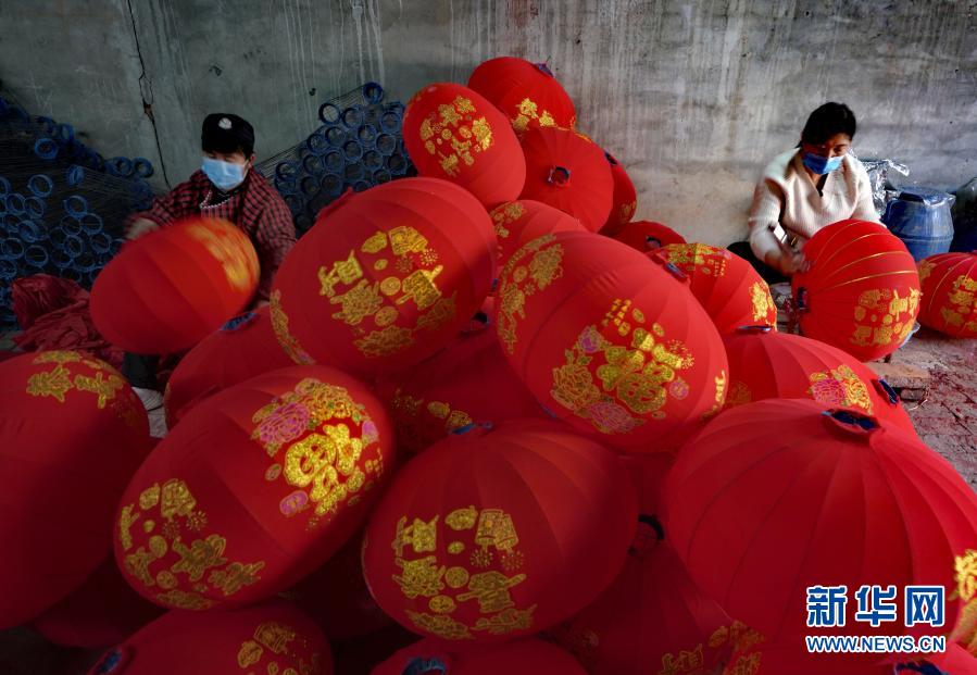 11月13日,河北省邢台市任泽区骆庄乡的村民在制作灯笼。