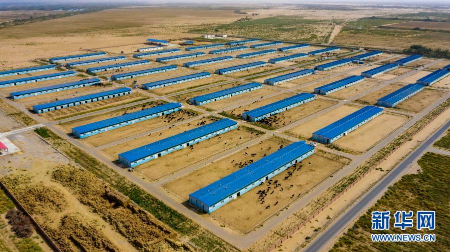 这是新疆皮山县木奎拉乡驴标准化养殖中心(9月23日摄,无人机照片)。