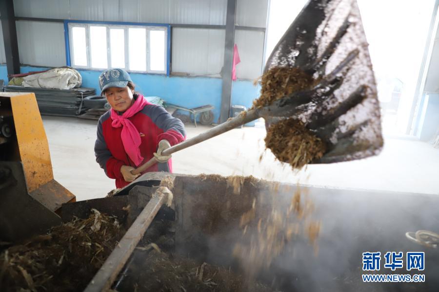 10月28日,在黑龙江省鹤岗市绥滨县忠仁镇黎明村的秸秆综合利用加工厂,村民将秸秆添加至机器内。新华社记者 徐凯鑫 摄
