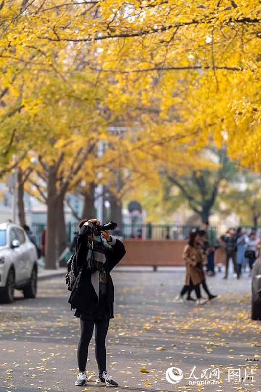 11月15日,市民在银杏大道上拍照留影。人民网记者 翁奇羽 摄