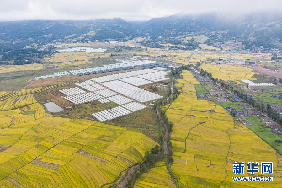 昭觉县阿并洛古乡的美丽田园和农业产业园(10月13日摄,无人机照片)。
