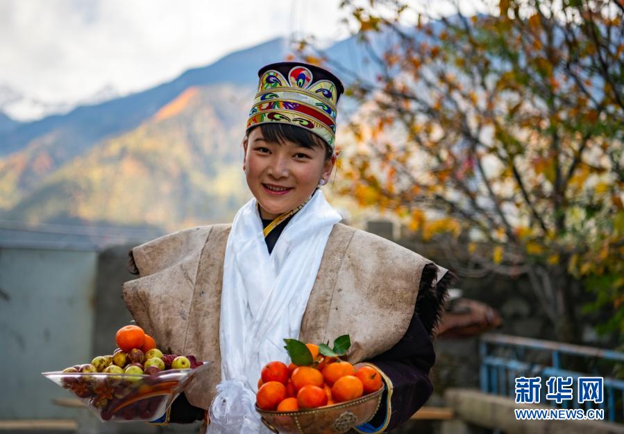 11月18日,西藏林芝市巴宜区巴吉村村民在欢度工布新年。