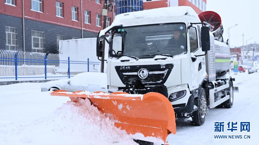11月19日,铲雪车在赤峰市敖汉旗新惠镇清理路面积雪。新华社记者 张晟 摄