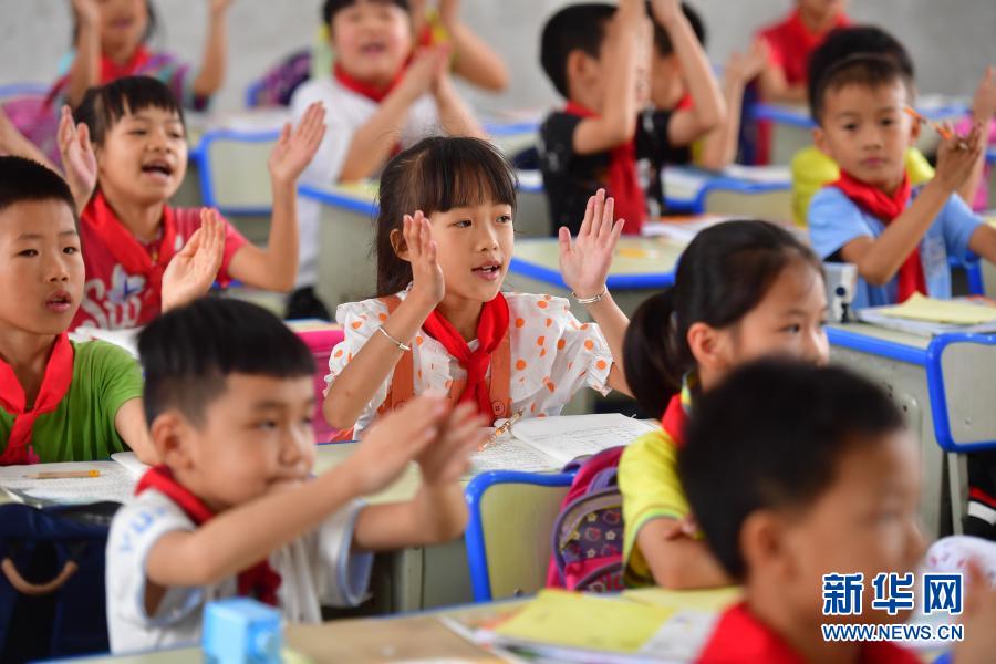 在广东廉江市援建的融水苗族自治县贝林小学,孩子们在教室上课(6月2日摄)。