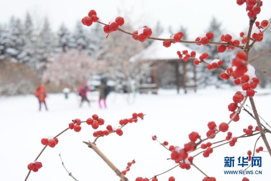 11月20日,游人在黑龙江省牡丹江市江滨公园赏雪游玩。