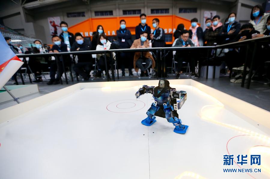 11月20日,参赛选手在进行舞蹈机器人比赛。