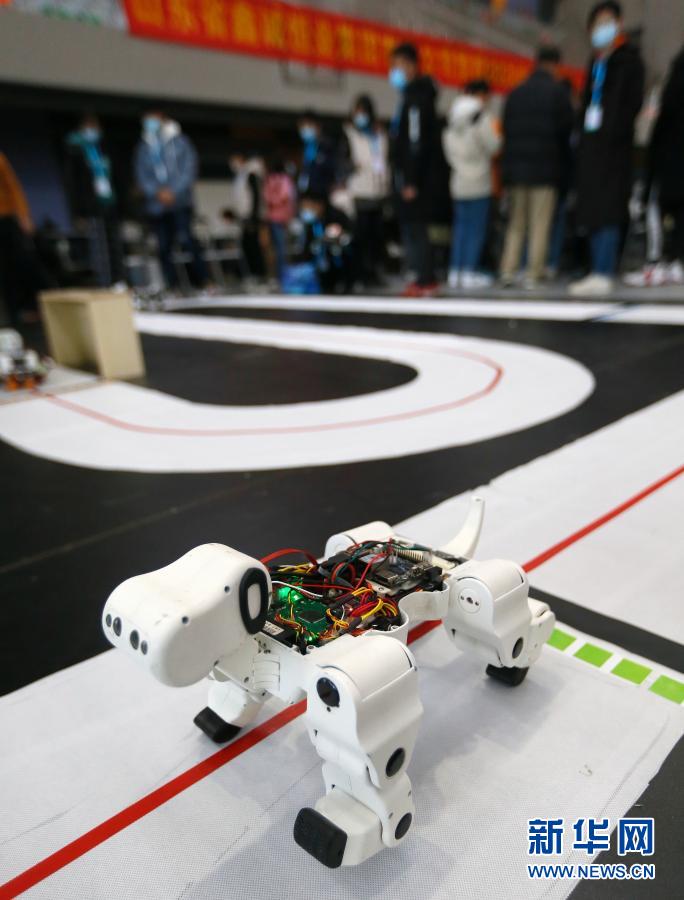 11月20日,参赛选手在进行四足仿生机器人比赛。新华社发(梁孝鹏 摄)