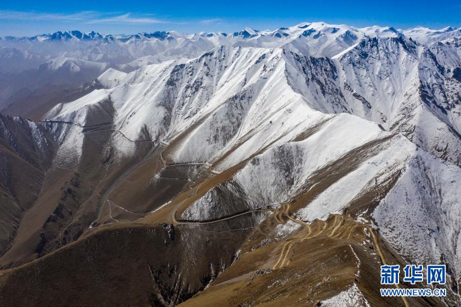 新疆喀什地区叶城县实施平整拓宽改造后的通往一处偏远山村的乡间道路(5月1日摄,无人机照片)。新华社记者 胡虎虎 摄