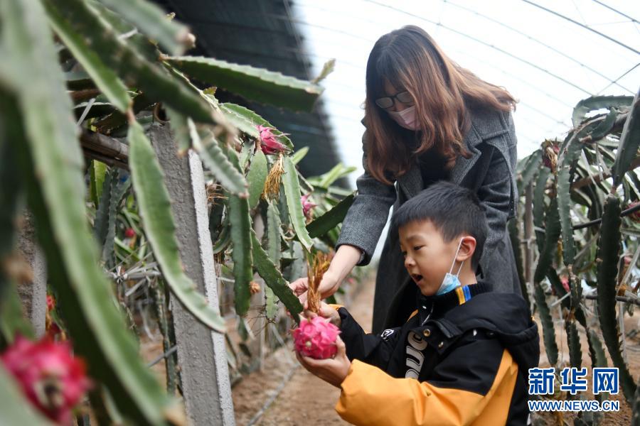 11月21日,市民在亚滦湾农业公园的大棚内采摘火龙果。