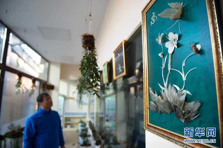 11月20日,居民在观看利用鱼尾、鱼骨等厨余垃圾制作的手工艺品。新华社记者 陈钟昊 摄