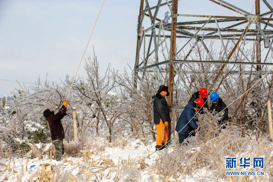 国网延边供电公司的职工在吉林省敦化市周边进行供电抢修作业(11月20日摄)。新华社发 (高旭升 摄)