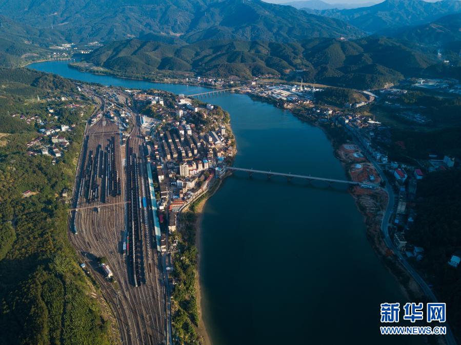 这是福建省南平市延平区来舟镇的来舟火车站和来舟镇(11月21日摄,无人机照片)。