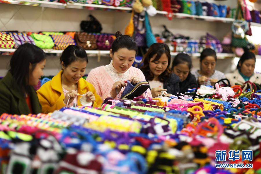 11月22日,在赤水市长期镇康桥社区,当地群众在扶贫车间钩织产品。新华社发(王长育 摄)