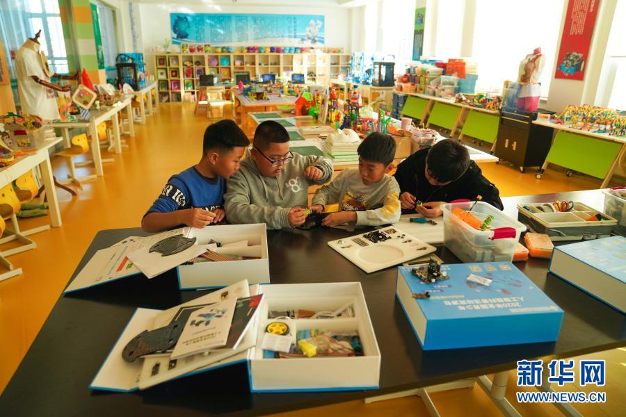 11月23日,在长春市二道区一零八教育集团长青校区,六年级的学生在创客教室学习机器人编程。