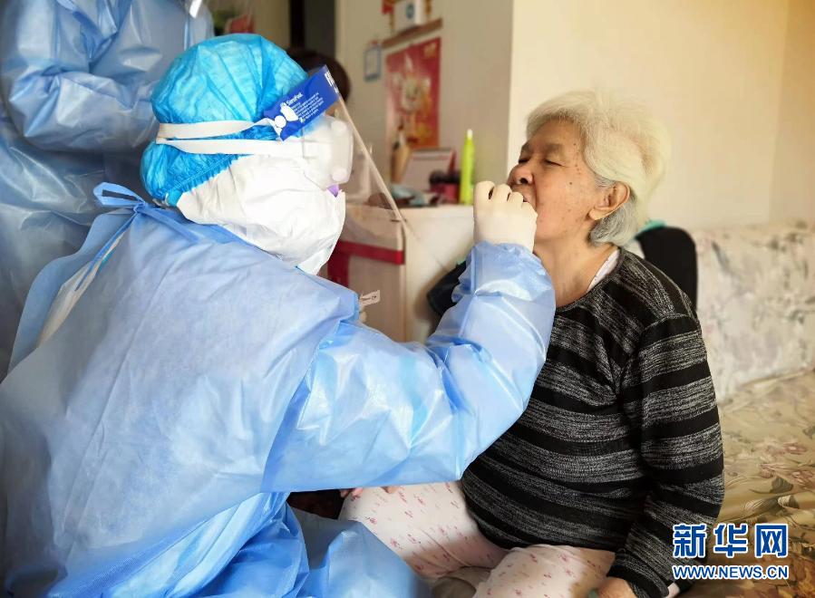 11月22日,医务人员入户为滨海新区居民进行核酸检测。