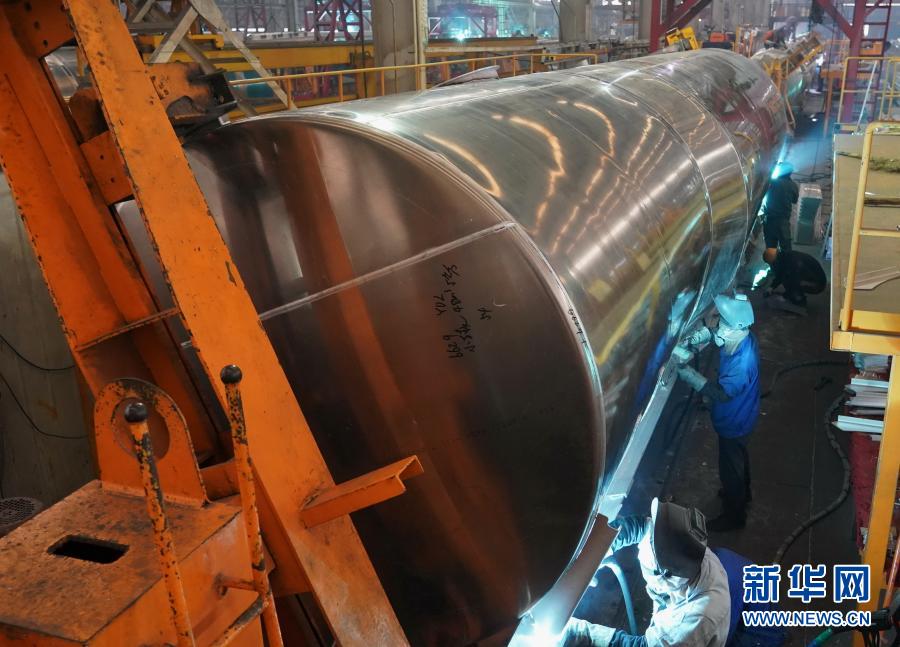 11月23日,工人在黄骅市一家运输专用车企业罐体焊接车间工作。