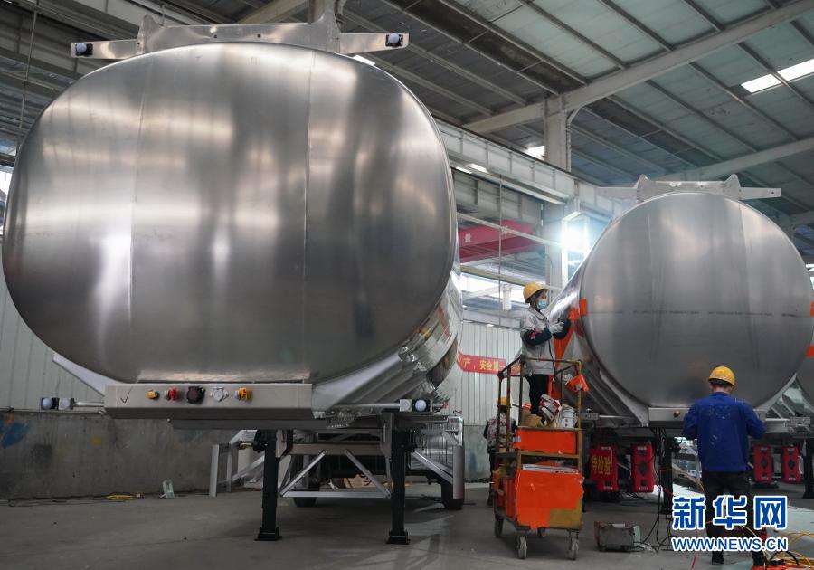 11月23日,工人在黄骅市一家运输专用车企业罐体喷涂车间工作。
