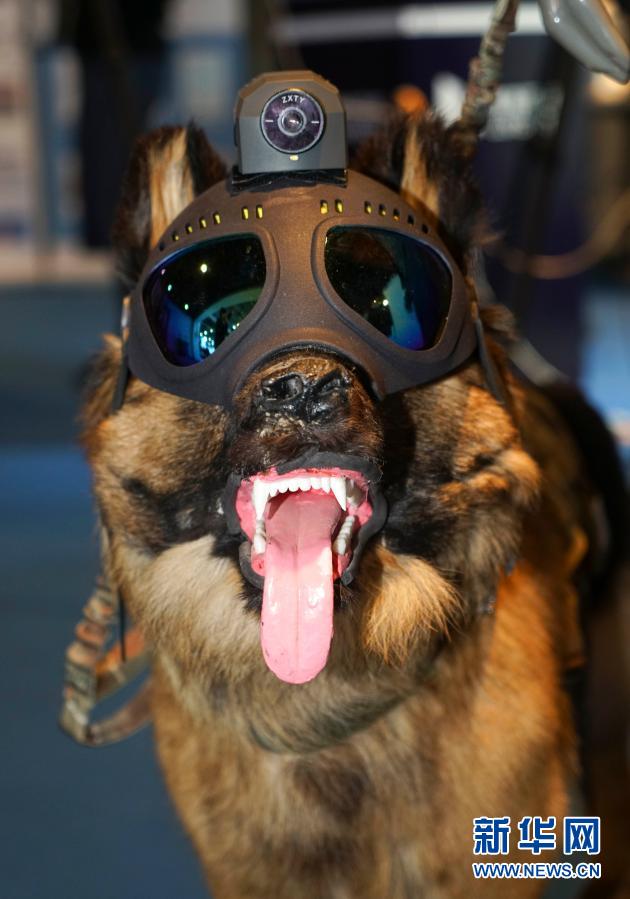 这是警用装备博览会上展出的警犬用天眼数字化系统(11月24日摄)。