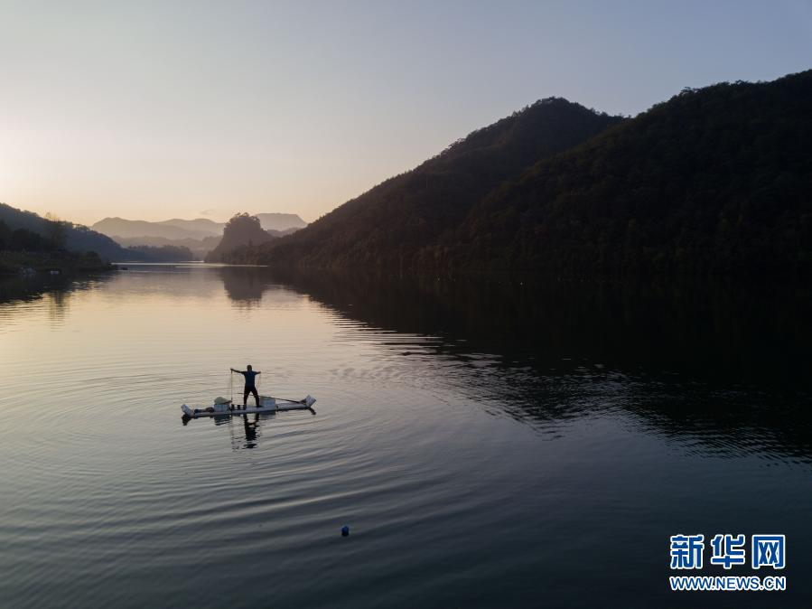 11月20日,常口村村民在村旁的金溪上捕鱼(无人机照片)。