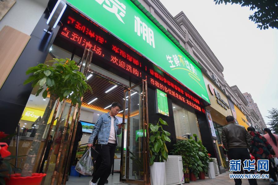 11月26日,浏阳市民在炭棚生鲜直营店购物后离开。