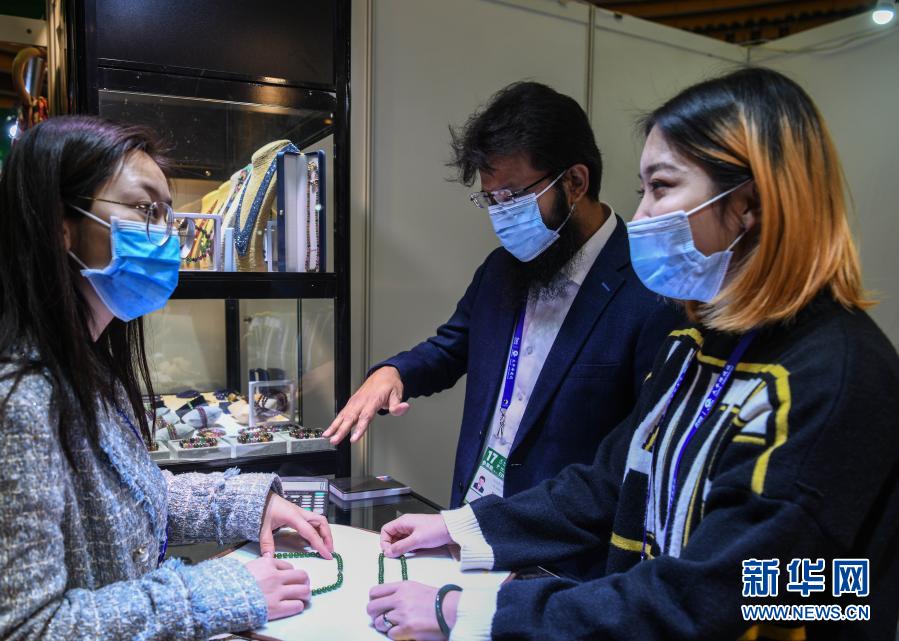 11月27日,在南宁国际会展中心展馆内,人们在选购商品。