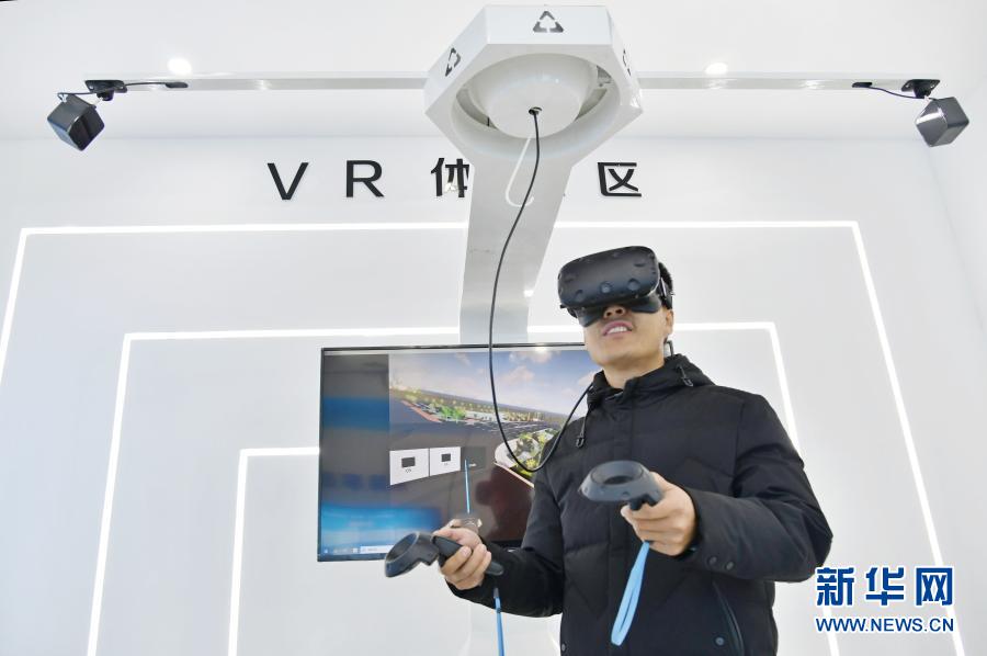 11月27日,中建八局一公司技术人员在调试VR河道实景体验系统。
