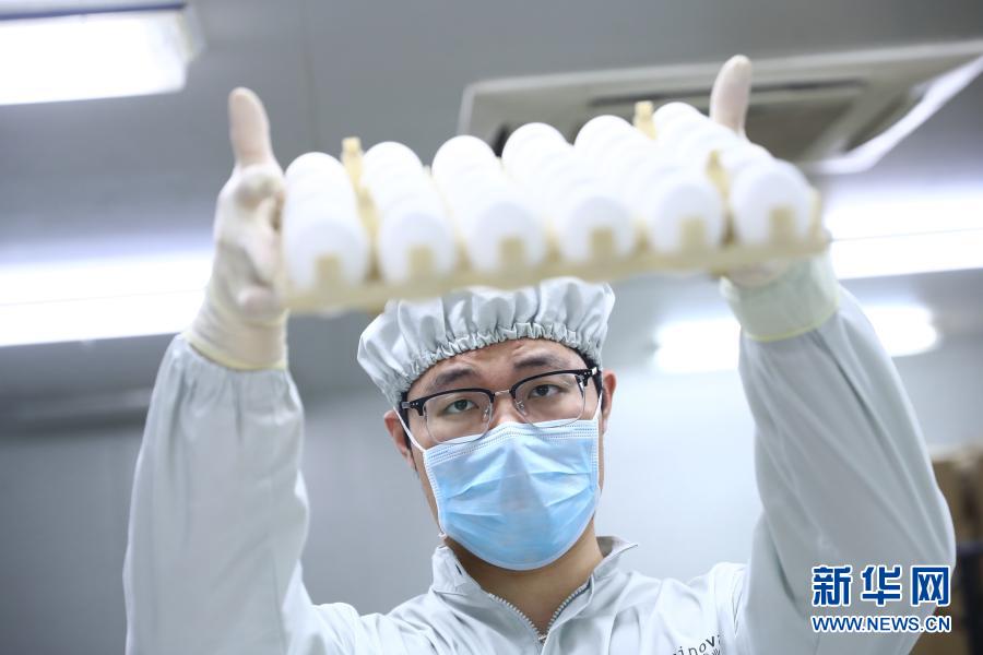 3月27日,在北京科兴生物制品有限公司流感疫苗生产车间,工作人员对鸡胚外观进行检查。新华社记者 张玉薇 摄